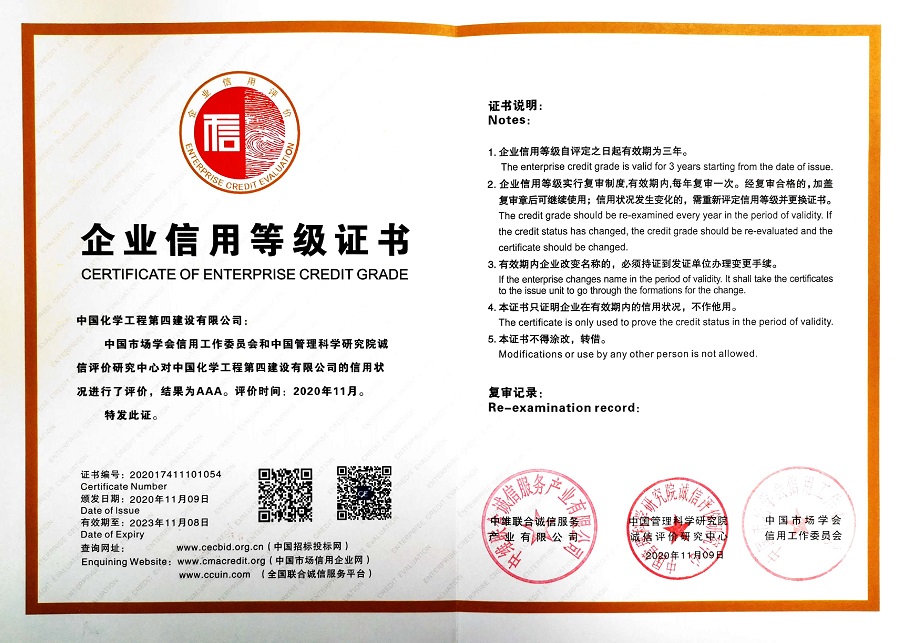 11月20日,公司收到全國聯合誠信服務平臺等部門聯合頒發的全國企業信用等級證書及牌匾,公司被評為全國信用AAA級企業。