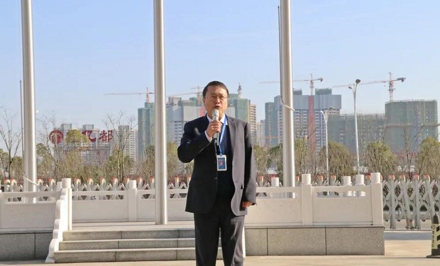 隨后,公司黨委書記胡流芳在國旗下發(fā)表新年講話。他首先代表公司向全體員工及家人拜年,致以新春的美好祝愿。他指出,新年舉行升國旗儀式,目的是為了激發(fā)大家的昂揚斗志,以飽滿的熱情、干事的激情、成事的豪情,盡快投入工作當(dāng)中,推動公司高質(zhì)量發(fā)展,為公司“十四五”開好局、起好步,助推公司早日實現(xiàn)“百億化建”目標(biāo)。他強調(diào),2021年是“十四五”開局之年,也是中國共產(chǎn)黨成立100周年。公司全體職工要發(fā)揮聰明才智,用務(wù)實的作風(fēng)和不折不撓的精神,團結(jié)一心,鼓足干勁,奮力拼搏,以“起步即沖刺、開局即決戰(zhàn)”的姿態(tài),只爭朝夕、全力以赴,以優(yōu)異成績獻禮中國共產(chǎn)黨百年華誕!
