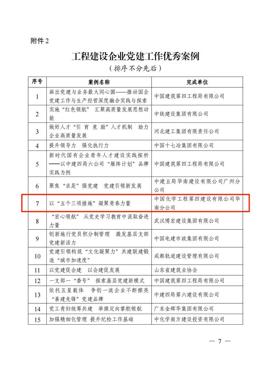 公司2項(xiàng)黨建工作案例獲評(píng)“工程建設(shè)企業(yè)黨建工作優(yōu)秀案例”