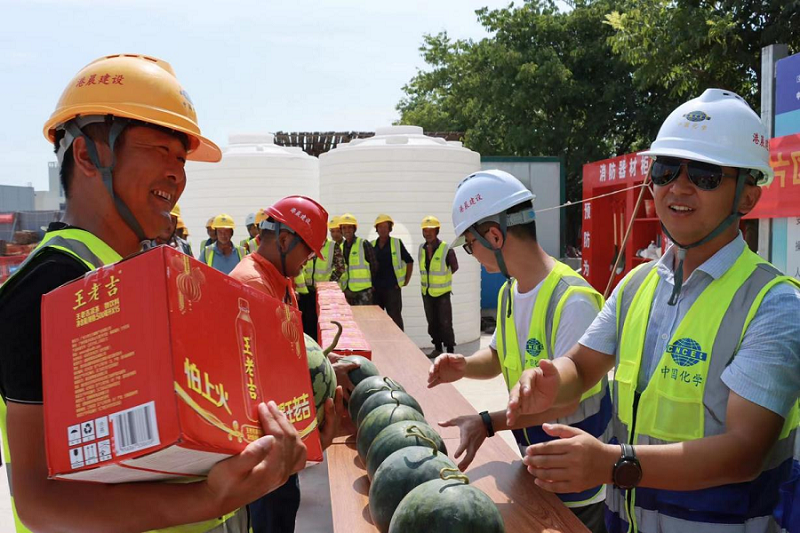 7月15日,東北公司在滄州旭陽化工項(xiàng)目組織開展“高溫慰問送清涼、情系一線暖人心”活動(dòng),為一線職工送去西瓜、涼茶、藿香正氣水等防暑降溫物品,并叮囑做好防暑降溫工作,預(yù)防各類事故發(fā)生,為項(xiàng)目竣工投產(chǎn)作貢獻(xiàn)。